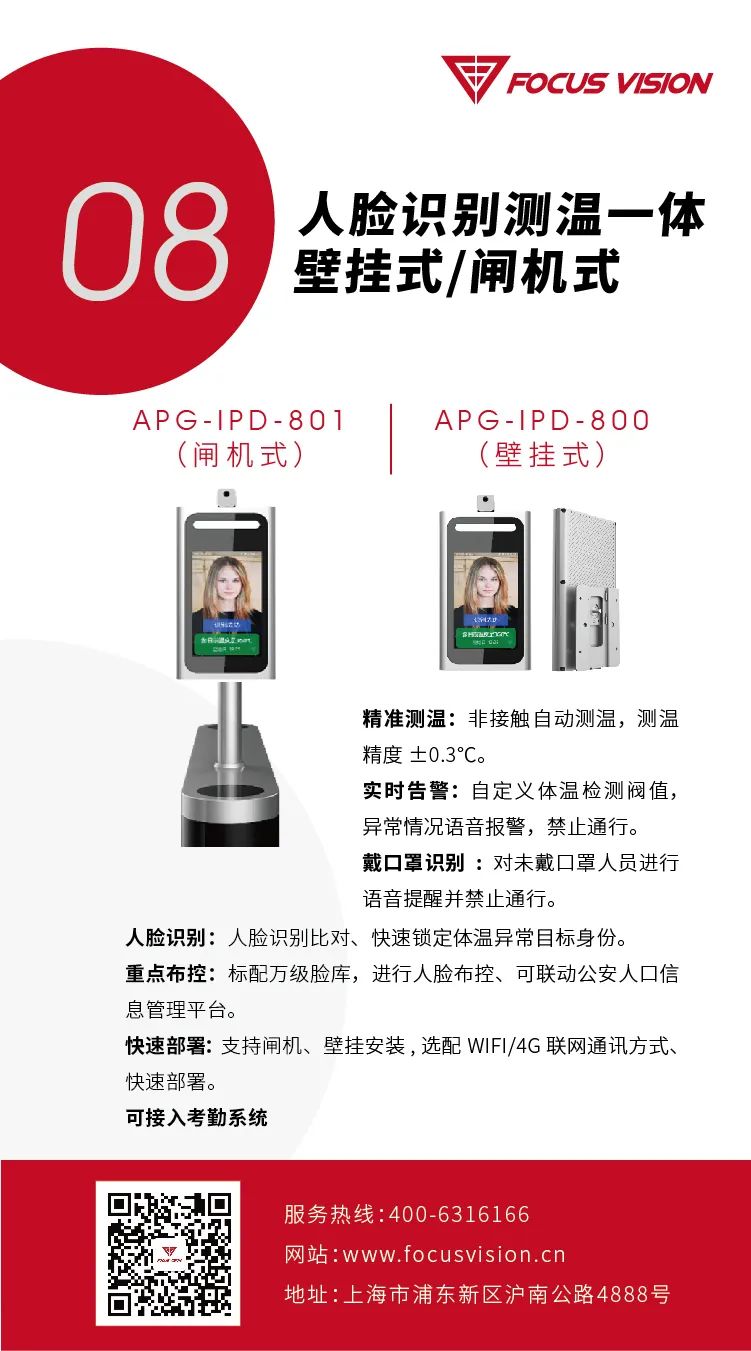 秒速测温,精度±0.3度,异常情况语音报警;