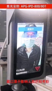 可接入考勤系统,人员登记后,即使戴口罩也可被精准识别。