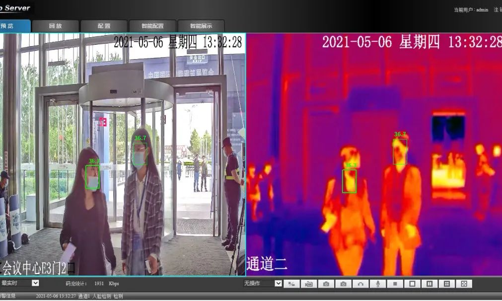 lewin乐玩还向展会赞助了多台双目热成像摄像机,用于观众入场实时测温和记录现场人流,这款摄像机利用可见光人脸检测绑定热成像技术实现实时精准测温。不仅为展会防疫助力,也让更多观众们更近距离的体验了lewin乐玩测温产品。